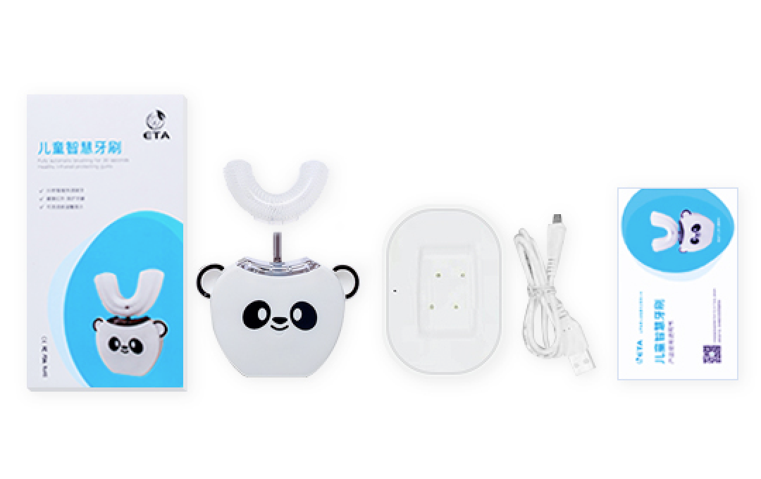 配件说明:外包装盒x1、主机套x1、充电底座x1、USB线x1、说明书x1 产品名称:ETA KIDS儿童智慧牙刷 产品颜色:白色、粉色、黄色、紫色 额定电压:DC73V 额定变频:5000-15000 额定电流:1500MA Max 产品材质:食品级硅胶 主机材质:丙烯腈、丁二烯、苯乙烯共聚物 产品尺寸:60X27X110mm 刷头选择:3到6岁幼儿,6-12岁儿童
